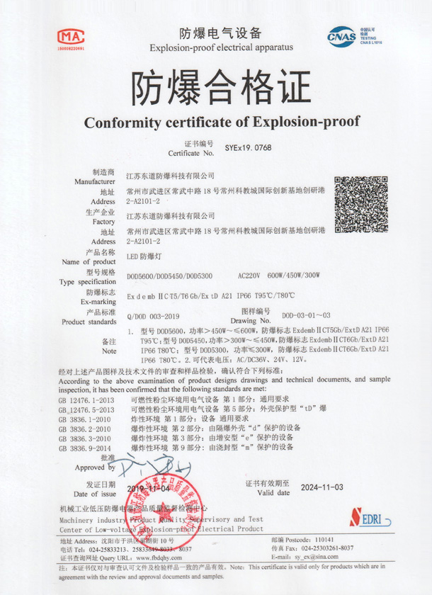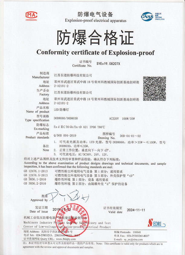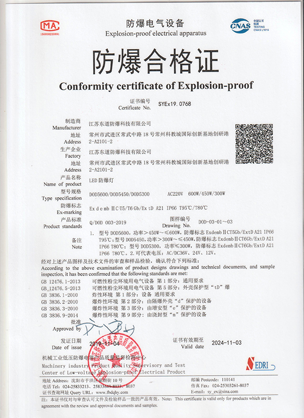 防爆電器的生產均嚴格按照GB3836-2000《爆炸性氣體環境用電氣設備》標準及其他相關標準的要求,每款產品均有對應的防爆合格證及檢測報告,旨在為煤礦冶金、石油化工、電力水利、鐵路航空船舶、場館廠房和部隊公安消防等企業部門,提供專業的照明解決方案和服務。