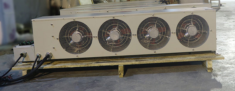 4、防爆熱風幕由離心風機、上風斗、下風斗、換熱器等部件組成。分熱水型、蒸汽型、冷熱水型三種;分明裝、暗裝二大類。